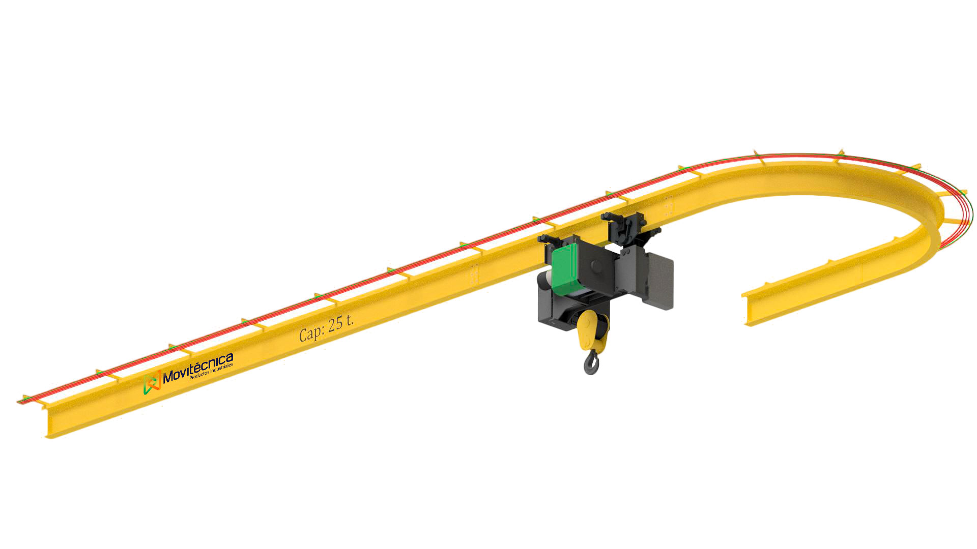 Una grúa monorriel es utilizado en cualquier proceso donde se requiere alcance en una línea recta o curva, el cual esta compuesto por un polipasto con trolley de accionamiento eléctrico o manual.